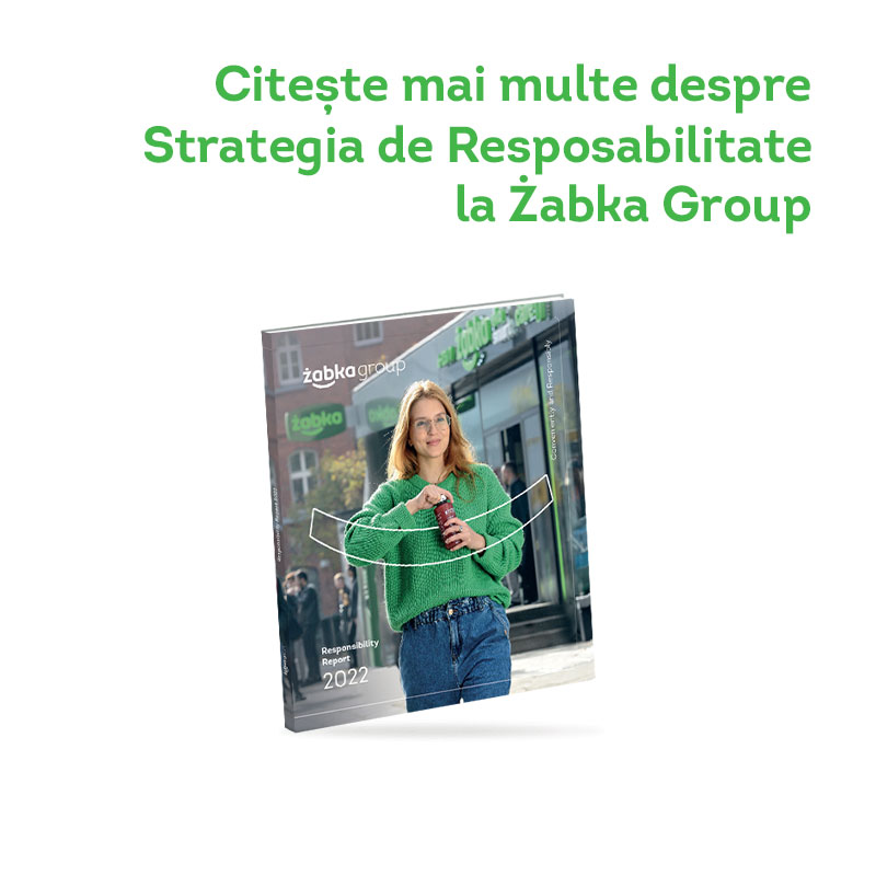 Responsabilitatea face parte din ADN-ul Żabka Group. Ne dorim ca acțiunile noastre nu doar să le simplifice viața clienților noștri, ci și să aibă un impact pozitiv asupra părților noastre interesate, asupra mediului în care aceștia își desfășoară activitatea, asupra comunităților locale și, în final, asupra planetei.