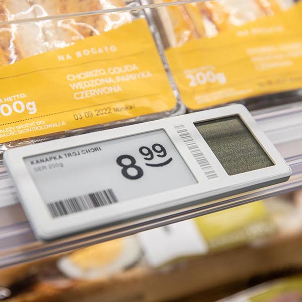 The Żabka Eko Smart in Poznań uses one of the world's first perovskite installations. This breakthrough, highly efficient photovoltaic technology generates green energy from sunlight and artificial light. It was used for the shutters on one of the walls of the building and the price display strips installed on the shelves with merchandise, which saves paper.